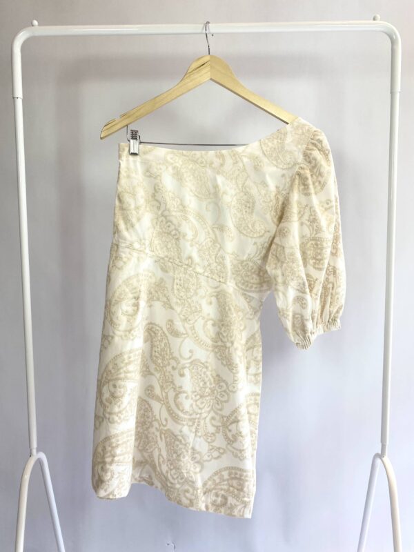 Vestido curto bege bordado um ombro manga bufante AHKA – M (nunca usado)