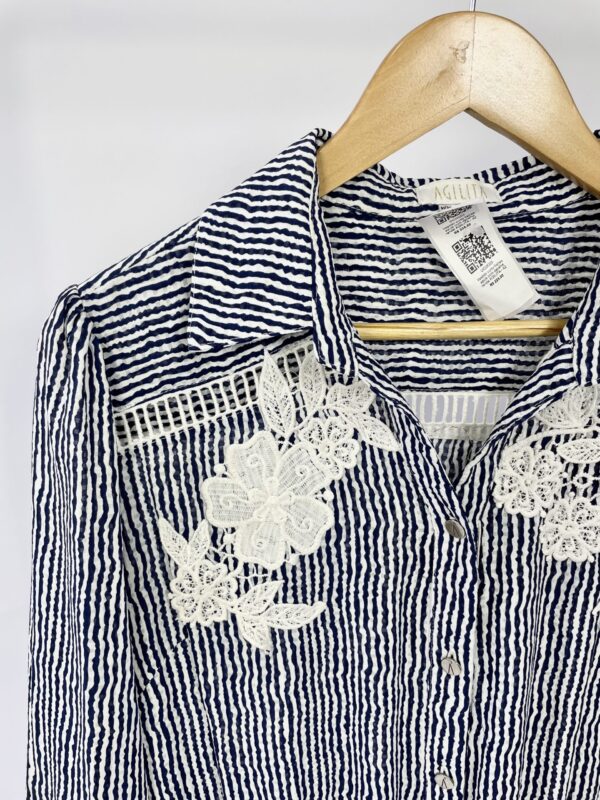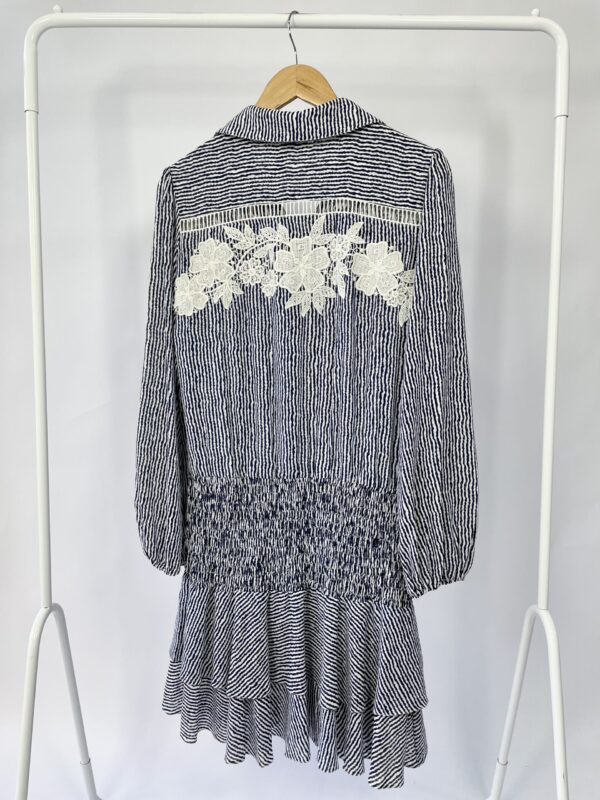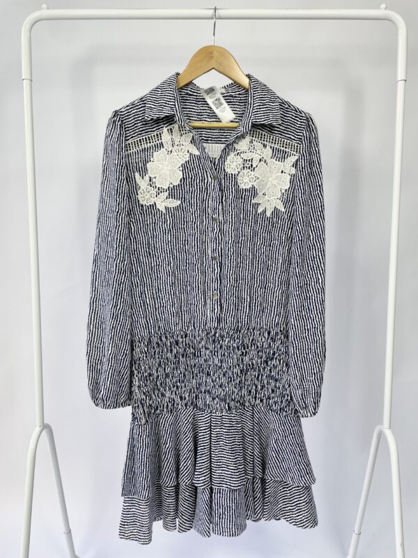 Vestido curto listras azuis com detalhe renda AGILITA – 42 – VENDIDO SISTEMA OTO