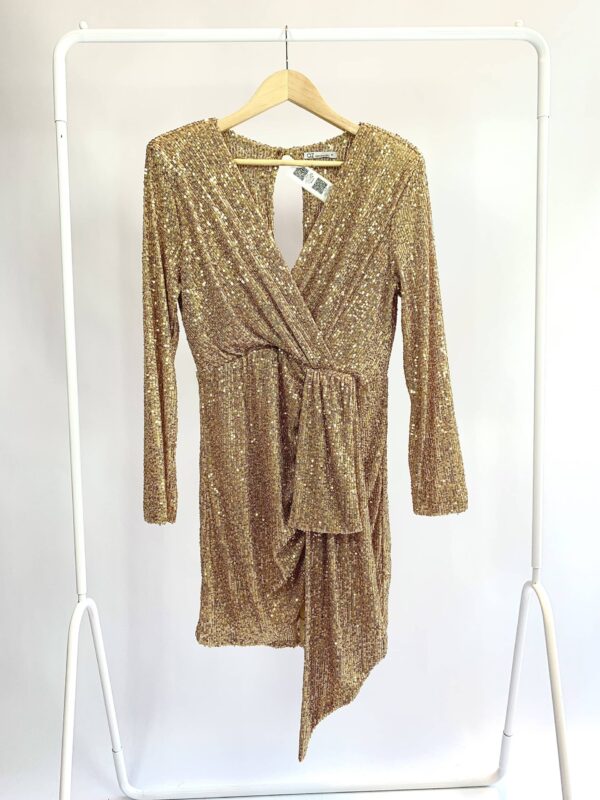 Vestido curto paetê rosa manga longa ombreiras AZ COLLECTION - P - vendido sistema oto