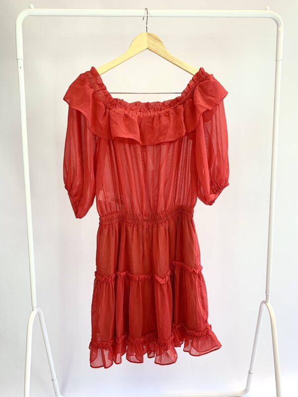 Vestido curto transparência vermelho ciganinha lastex cintura AVE RARA *nunca usado* – M – VENDIDO SISTEMA OTO