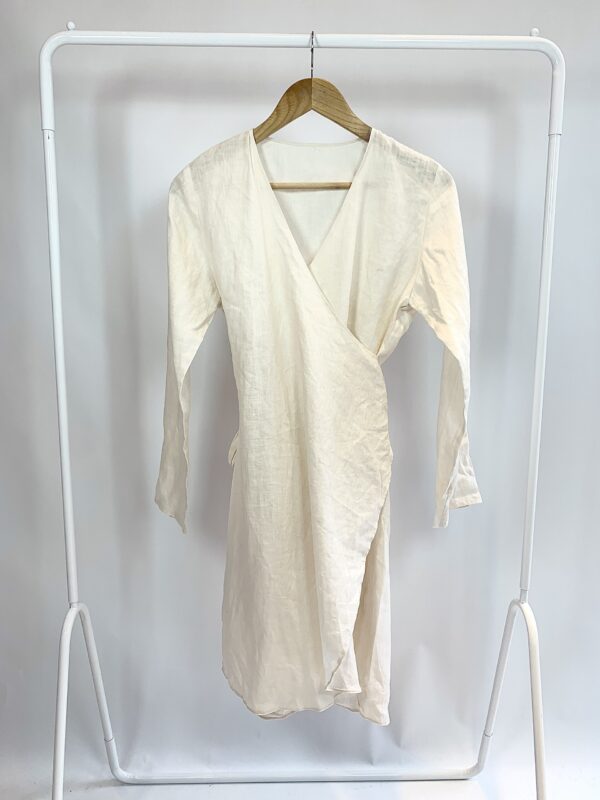Saia midi linho branca listras pretas - 38