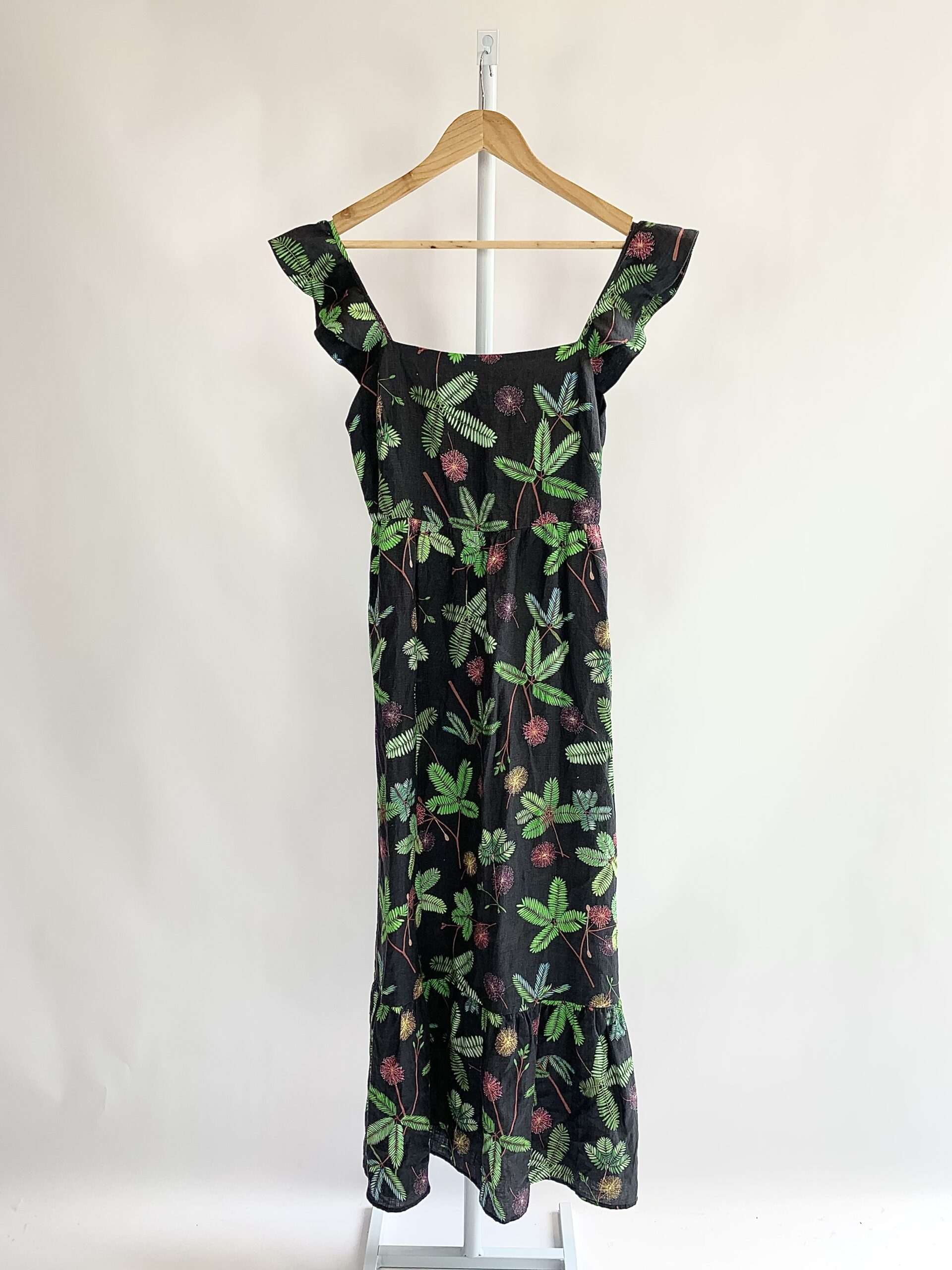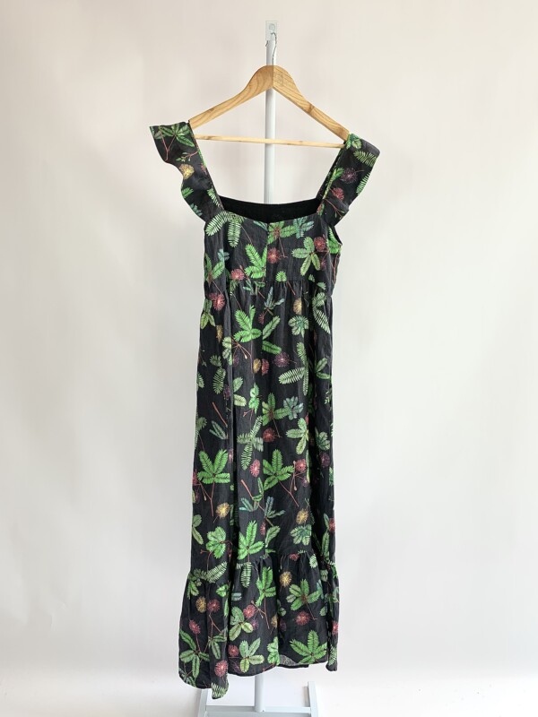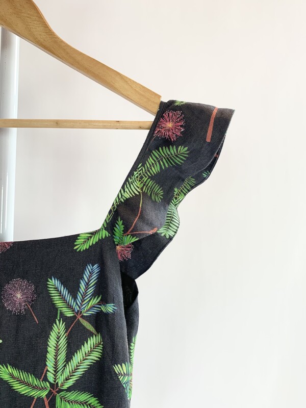 Vestido linho midi preto estampa dormideira A.BRAND – 40 *nunca usado*