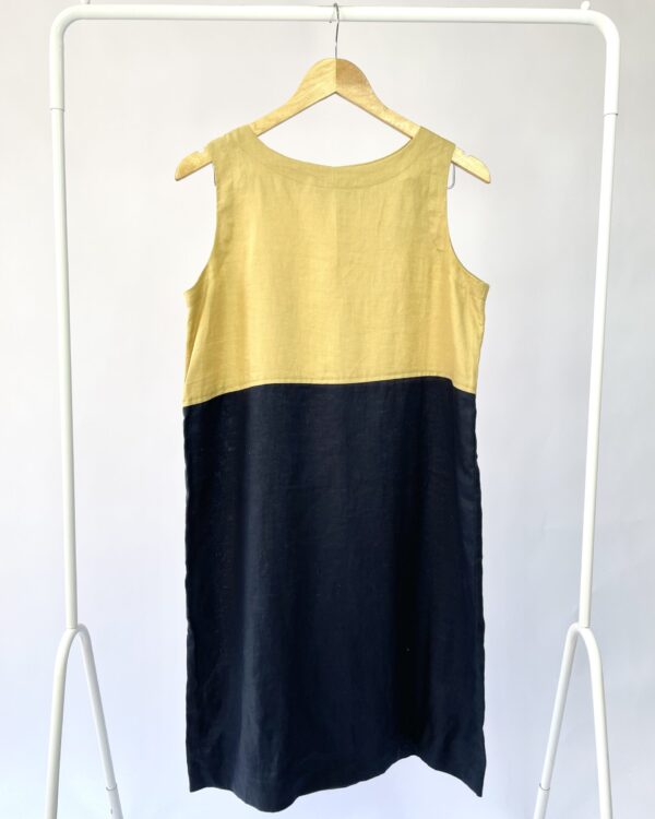 Vestido midi azul marinho com marrom BARCALA - M - VENDIDO SISTEMA OTO