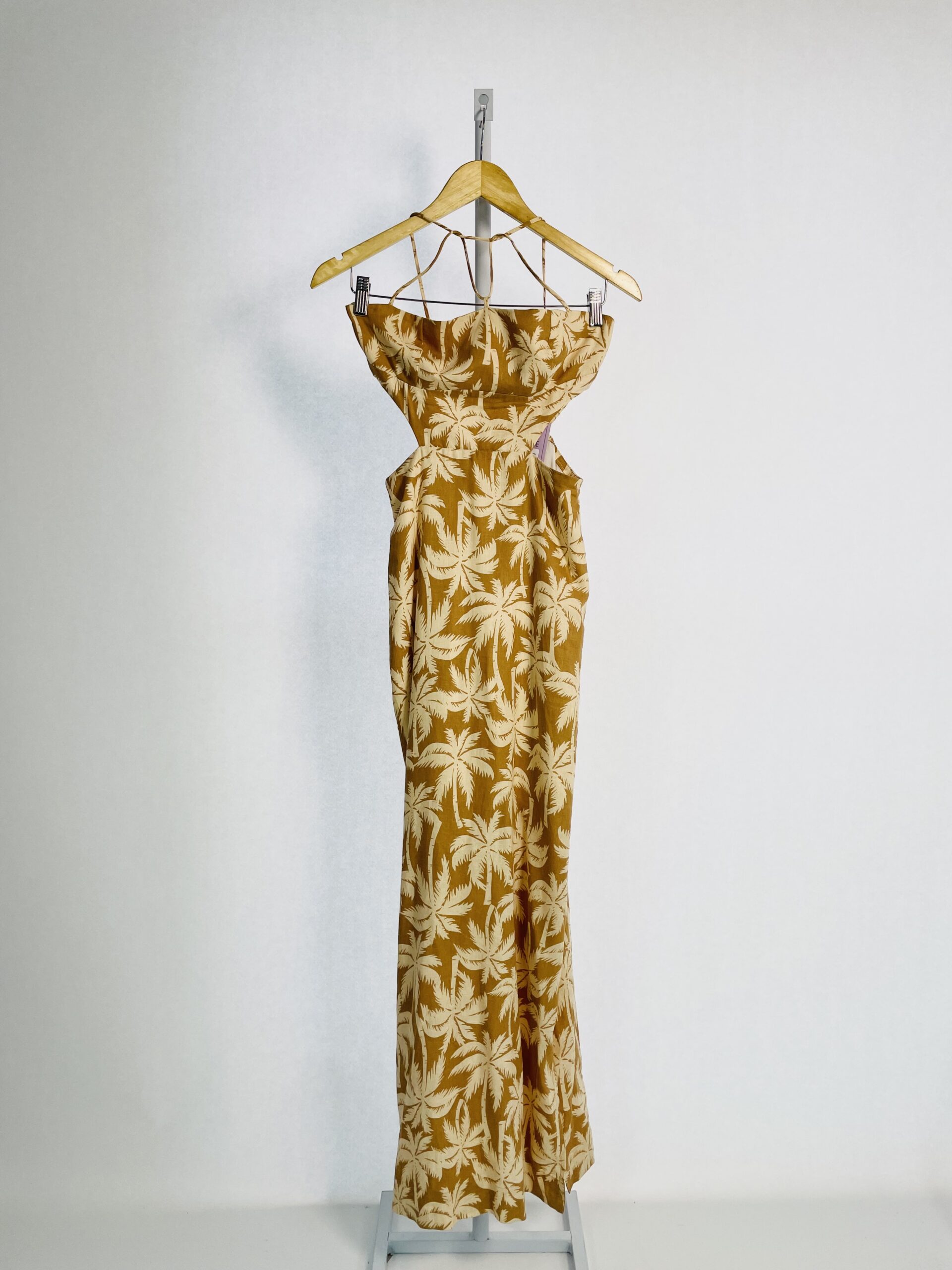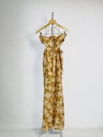 Vestido longo bege mangas longas drapeado no busto e fenda na frente FABULOUS AGILITÁ - PP