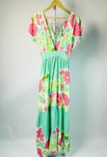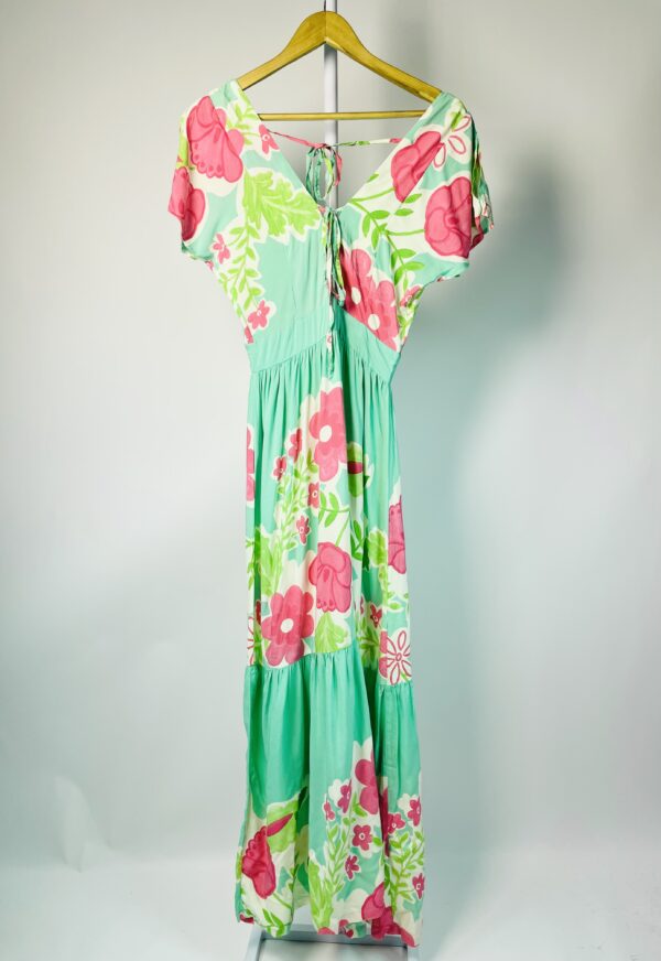 Vestido longo estampado tons de verde e rosa GATTO BLU – P