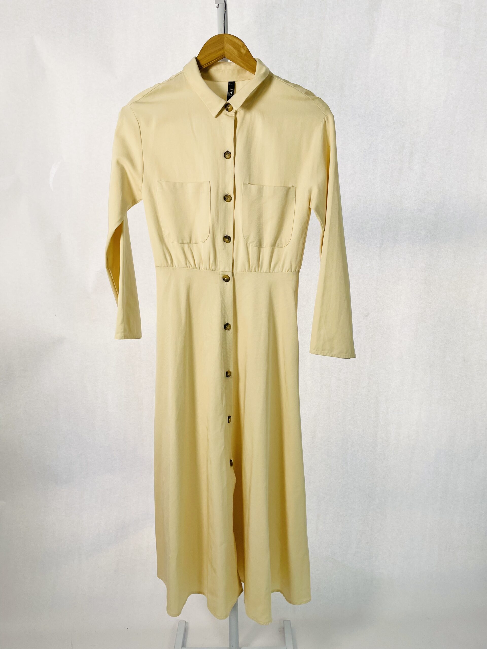 Vestido longo manga com botoes amarelo claro ZARA – PP – VENDIDO SISTEMA OTO