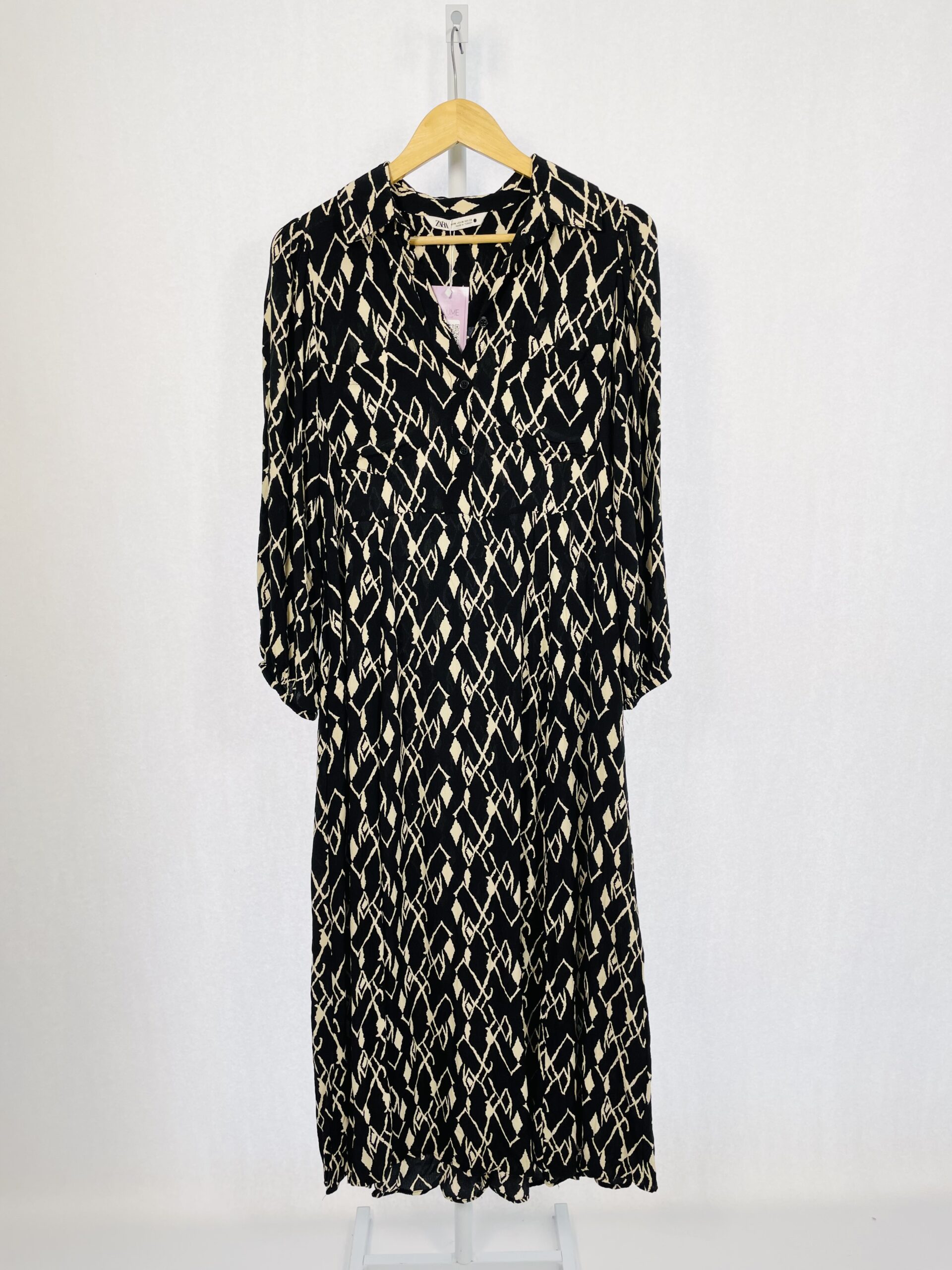 Vestido Longo Preto com Estampa Off Wite ZARA – M