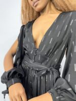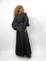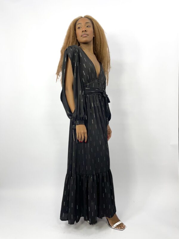 Vestido longo preto estampa prateada detalhe nas mangas AMANDA BRASIL – G – VENDIDO SISTEMA OTO