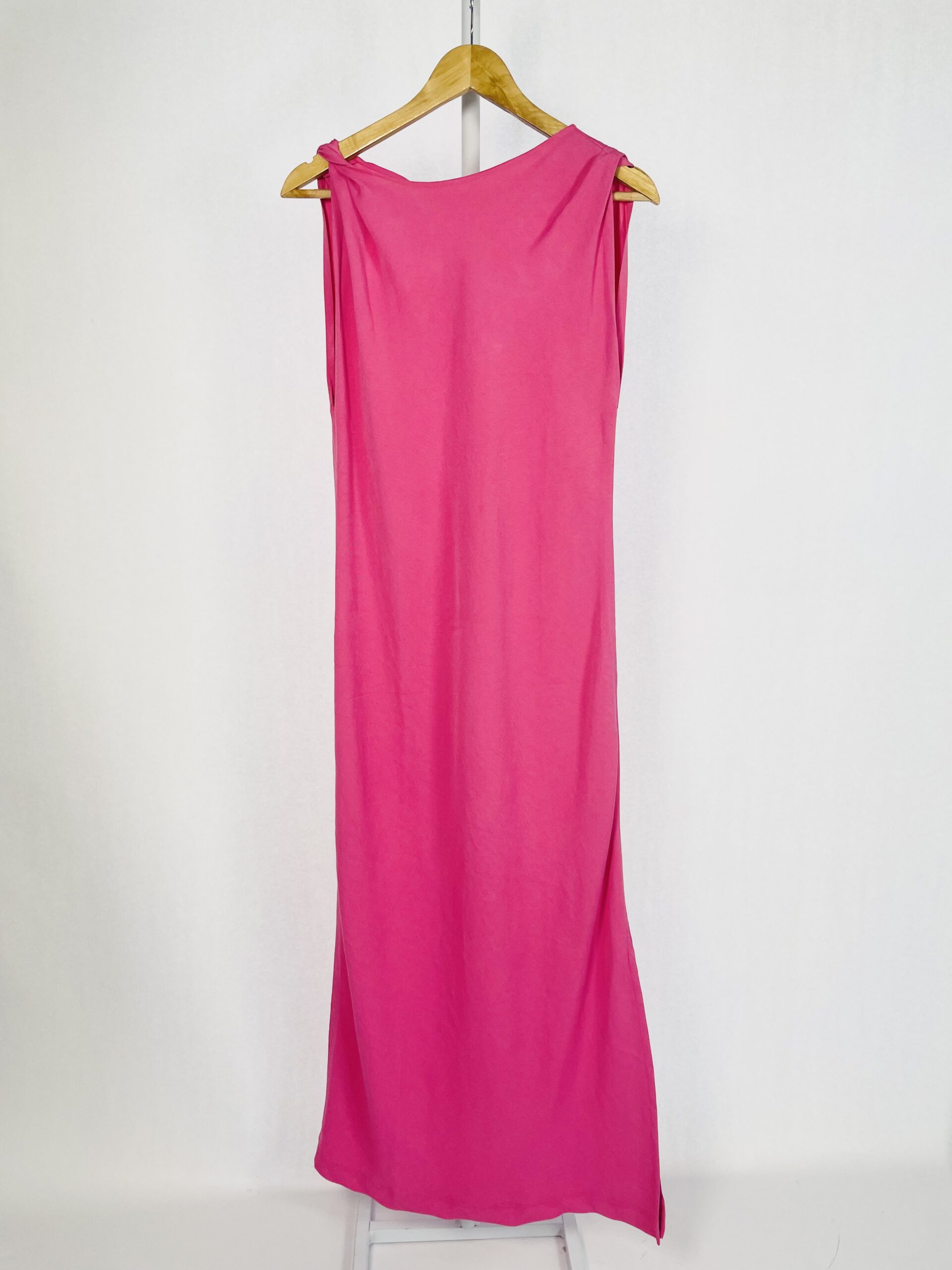 Vestido longo rosa com faixa e torcido na alça LUCIDEZ – 40