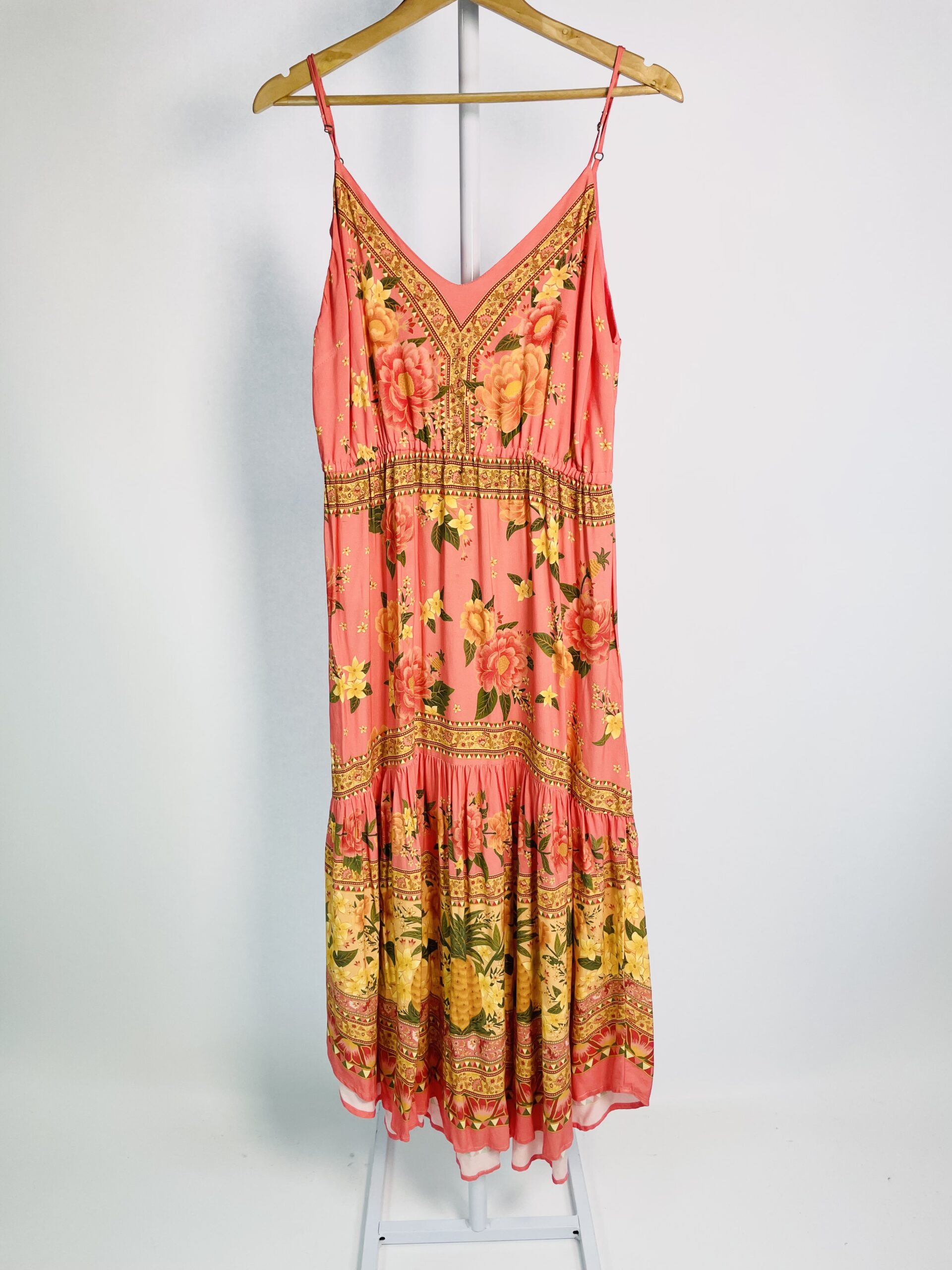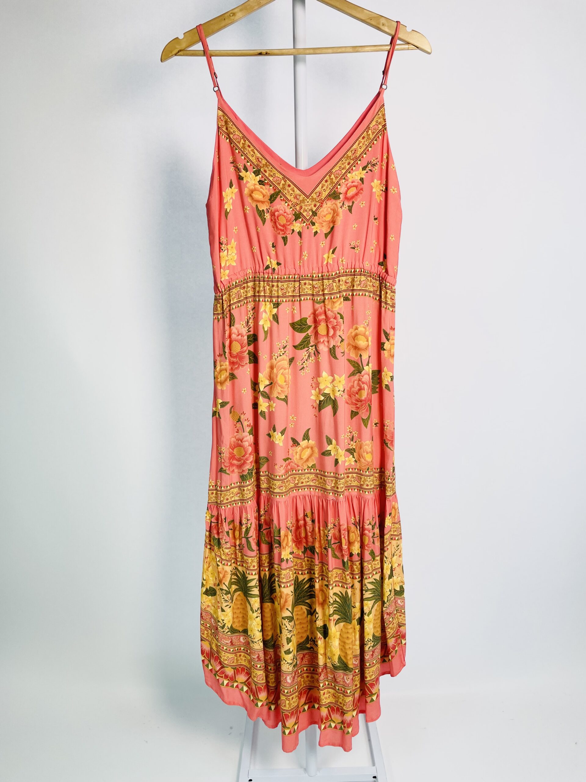 Vestido azul estampa colorida com lastex no busto FARM - P - VENDIDO SIST OTO