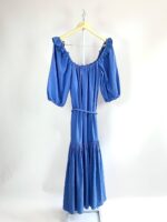 Vestido midi azul com detalhes no ombro CRIS BARROS – 38 – VENDIDO SIST OTO
