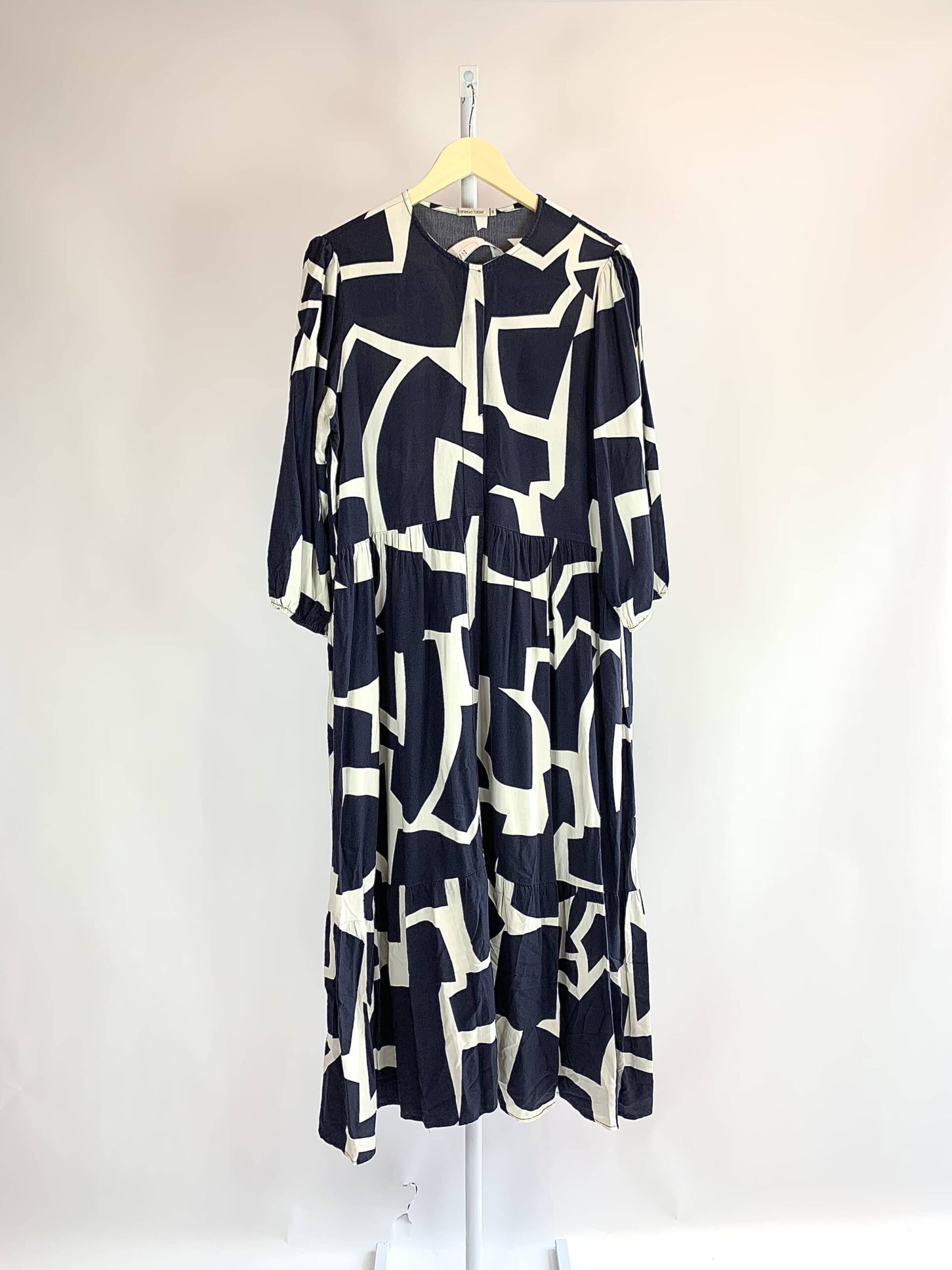 Vestido midi botões preto estampa gotas off saia ampla VANESSA TOBLER - G - VENDIDO SISTEMA OTO