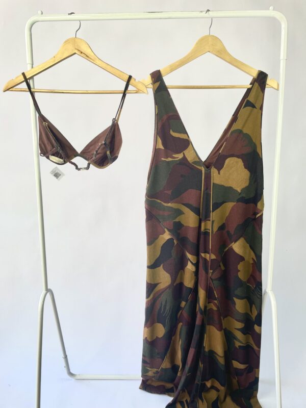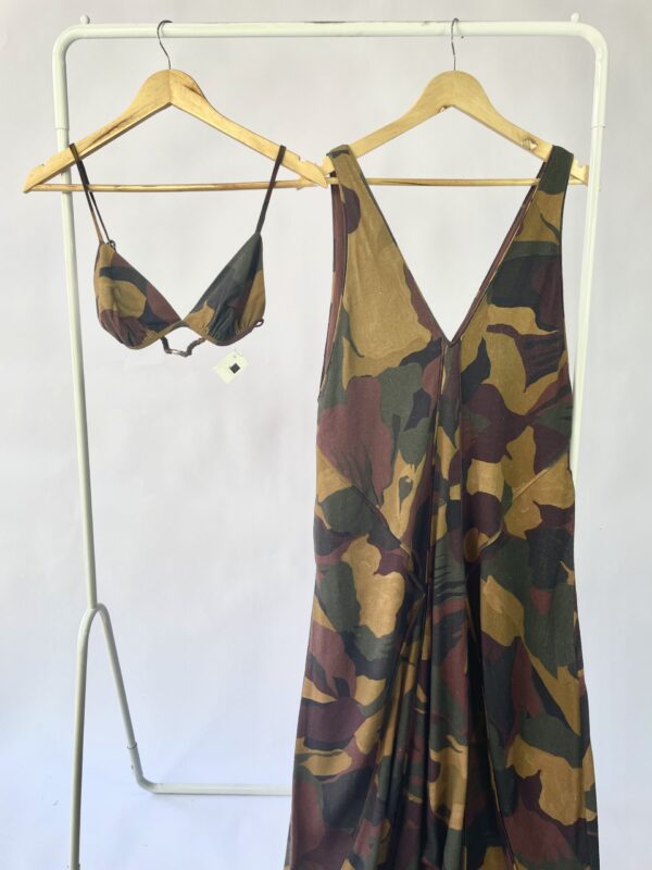 Macacão verde estampado com lastex busto FARM - P - VENDIDO SISTEMA OTO