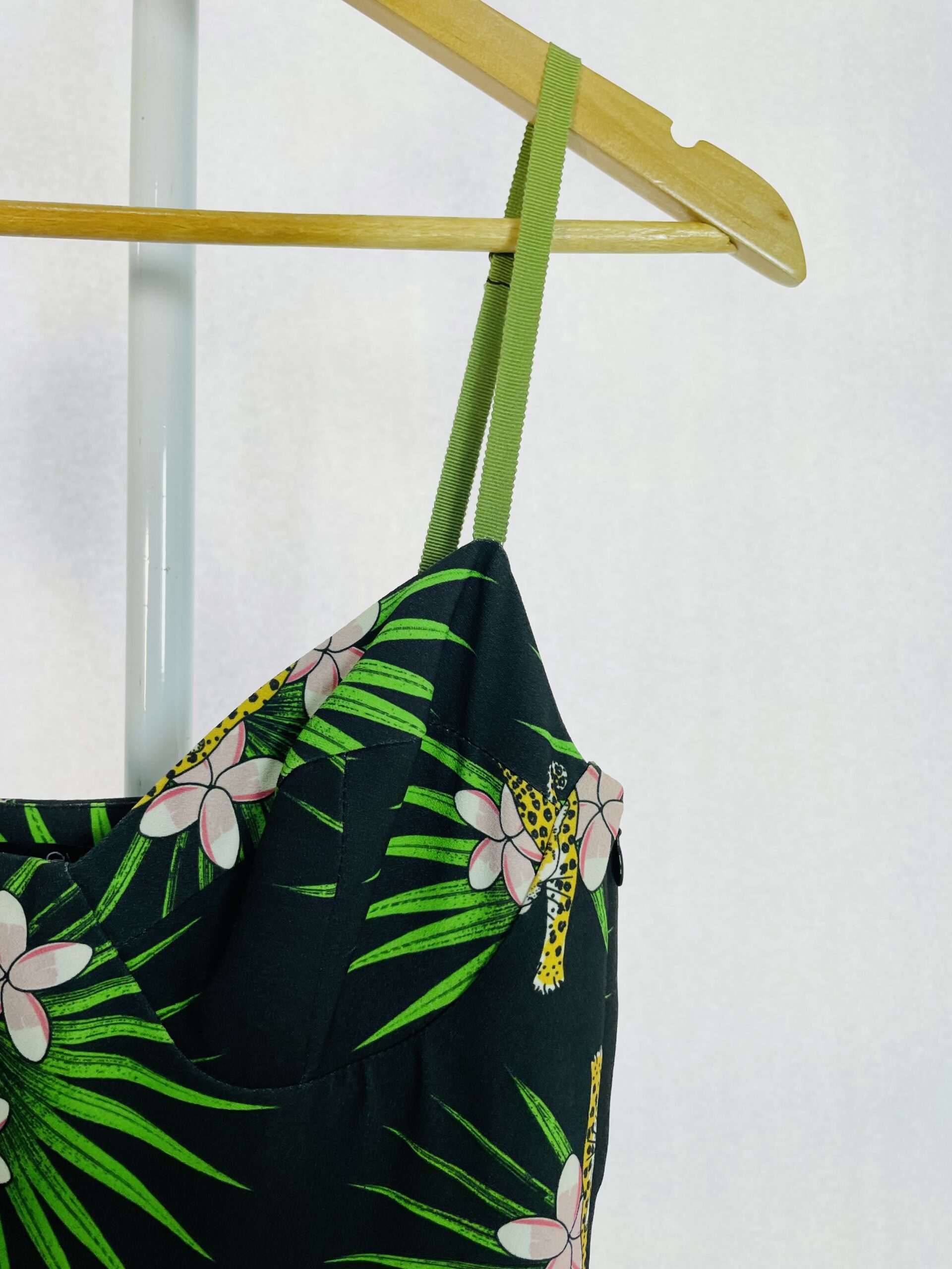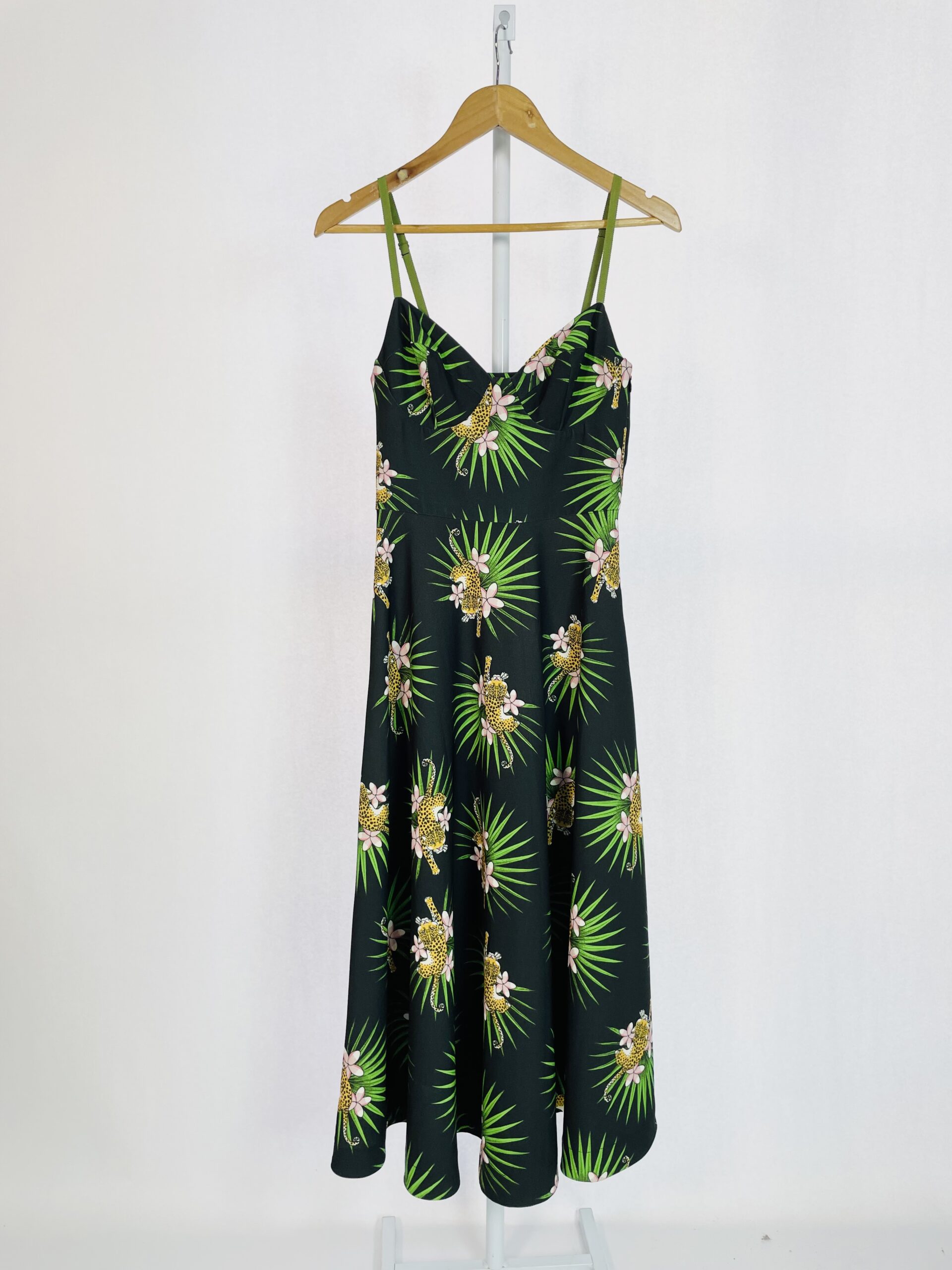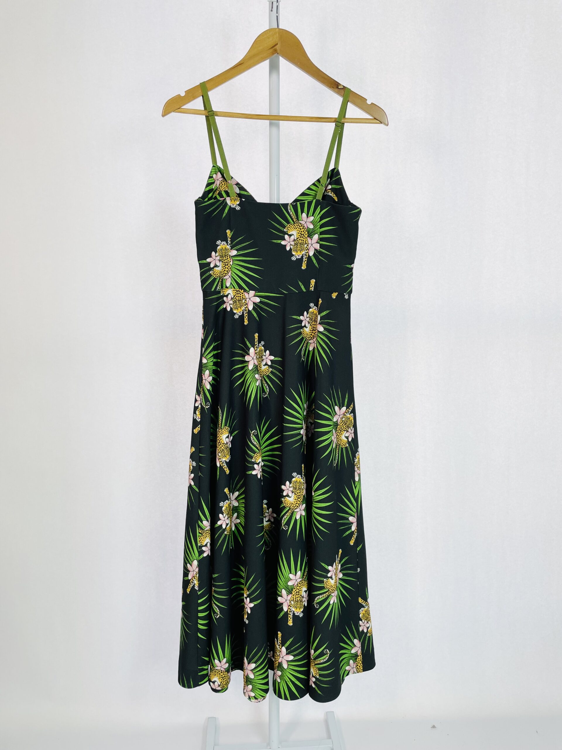 Vestido midi preto com estampa onça e folhagens EVA – 36 – VENDIDO SISTEMA OTO