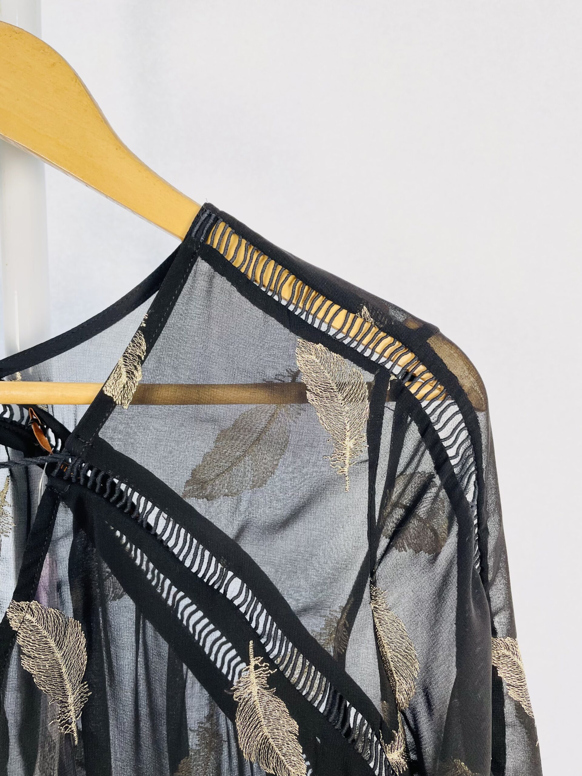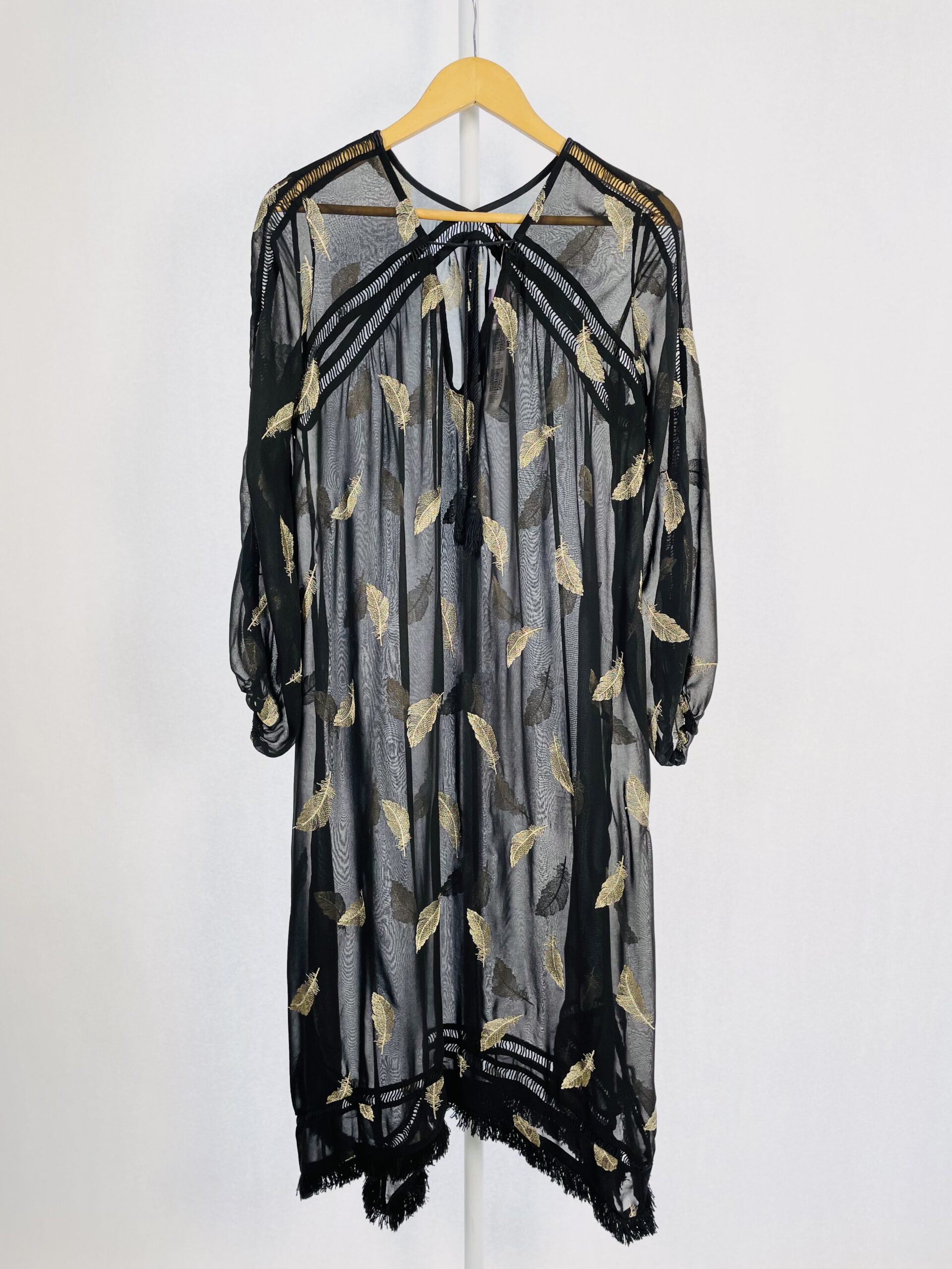 Vestido midi preto com transparência e penas bordadas douradas sem forro ANIMALE – 36
