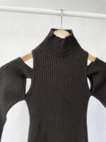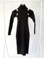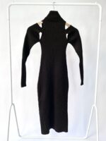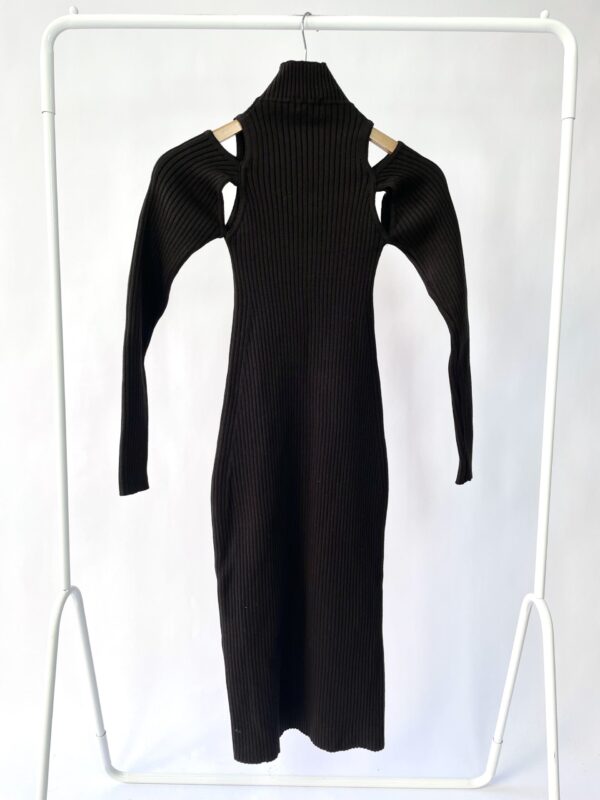 Vestido midi preto tricot canelado GINGER – P