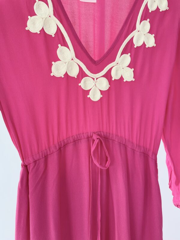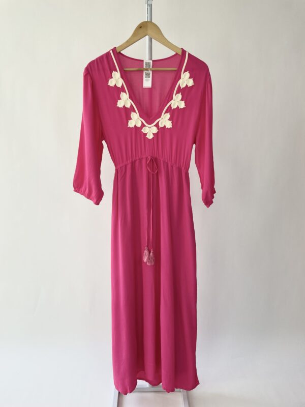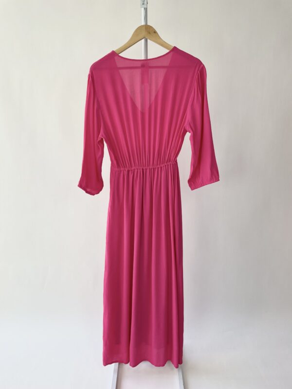 Vestido midi rosa com detalhes no decote SACADA – P VENDIDO SISTEMA OTO