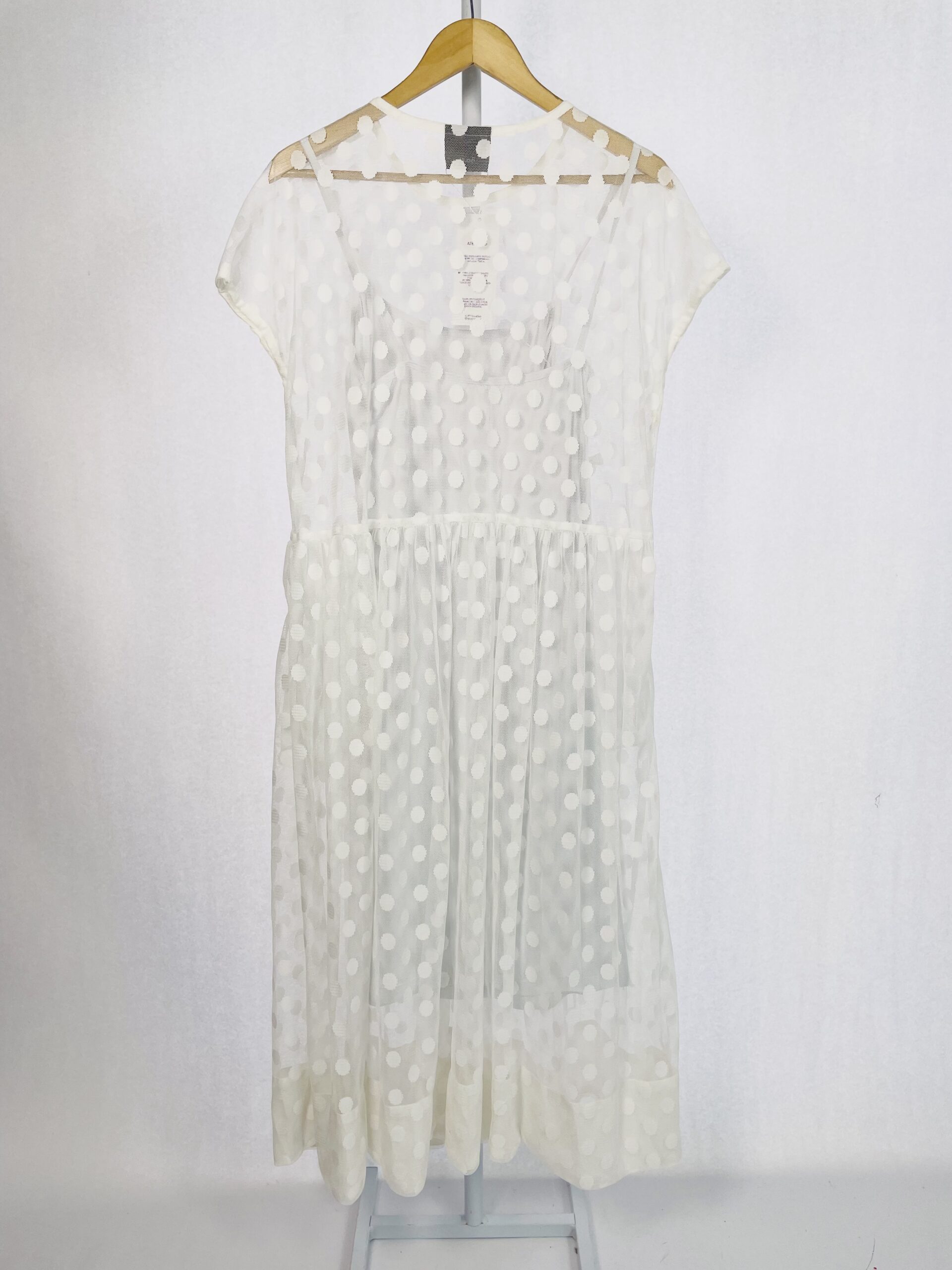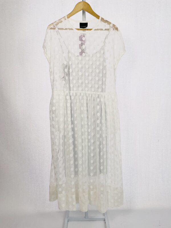 Vestido midi tule com poá branco com forro STUDIO LAUNDRY – G – VENDIDO SISTEMA OTO