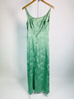 Vestido midi azul com flores bege lastex na cintura LUISA MEIRELLES - M - VENDIDO SISTEMA OTO