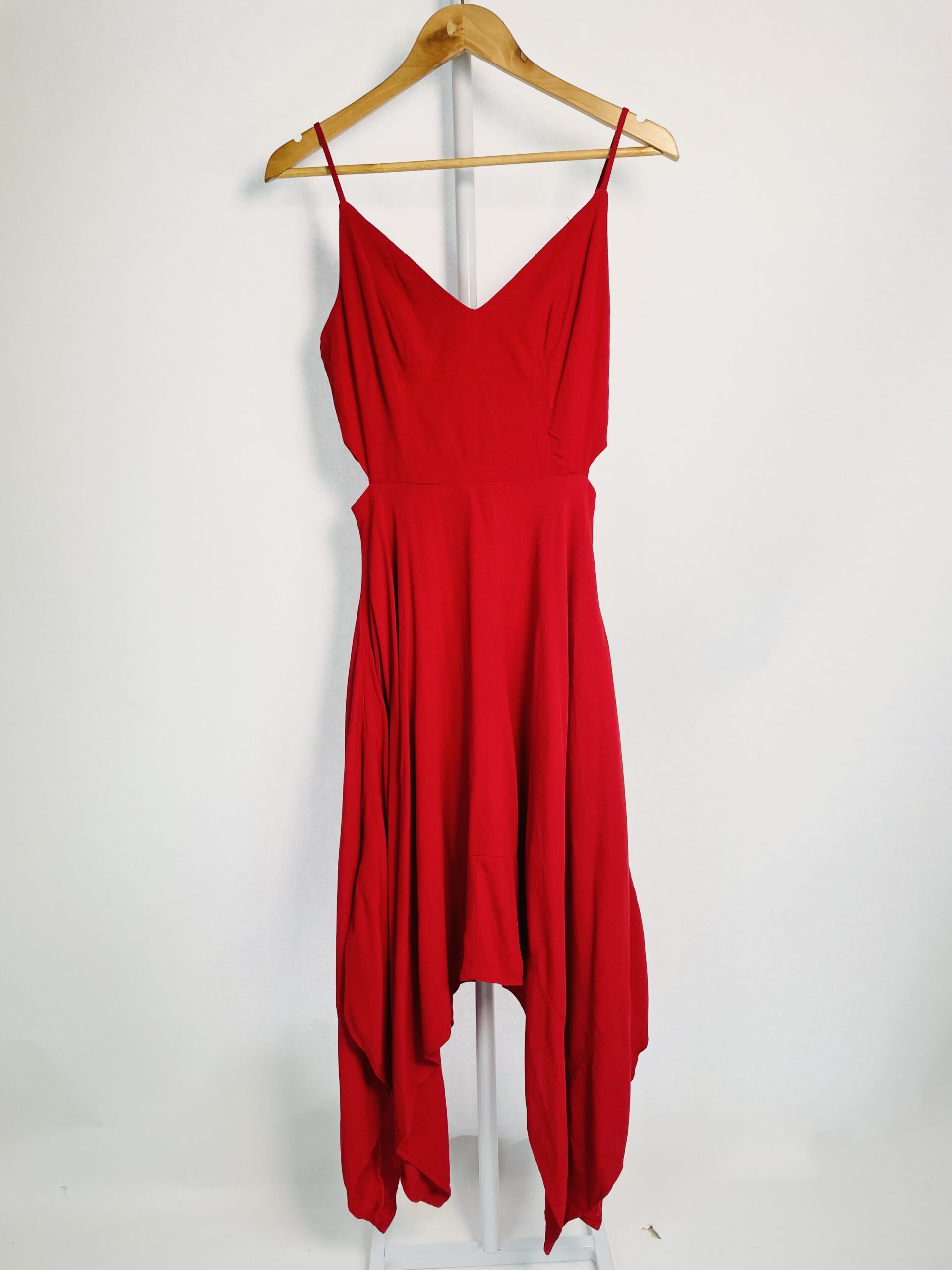 Vestido midi vermelho com recortes na cintura e amarração MARIA FILÓ – P – VENDIDO SISTEMA OTTO