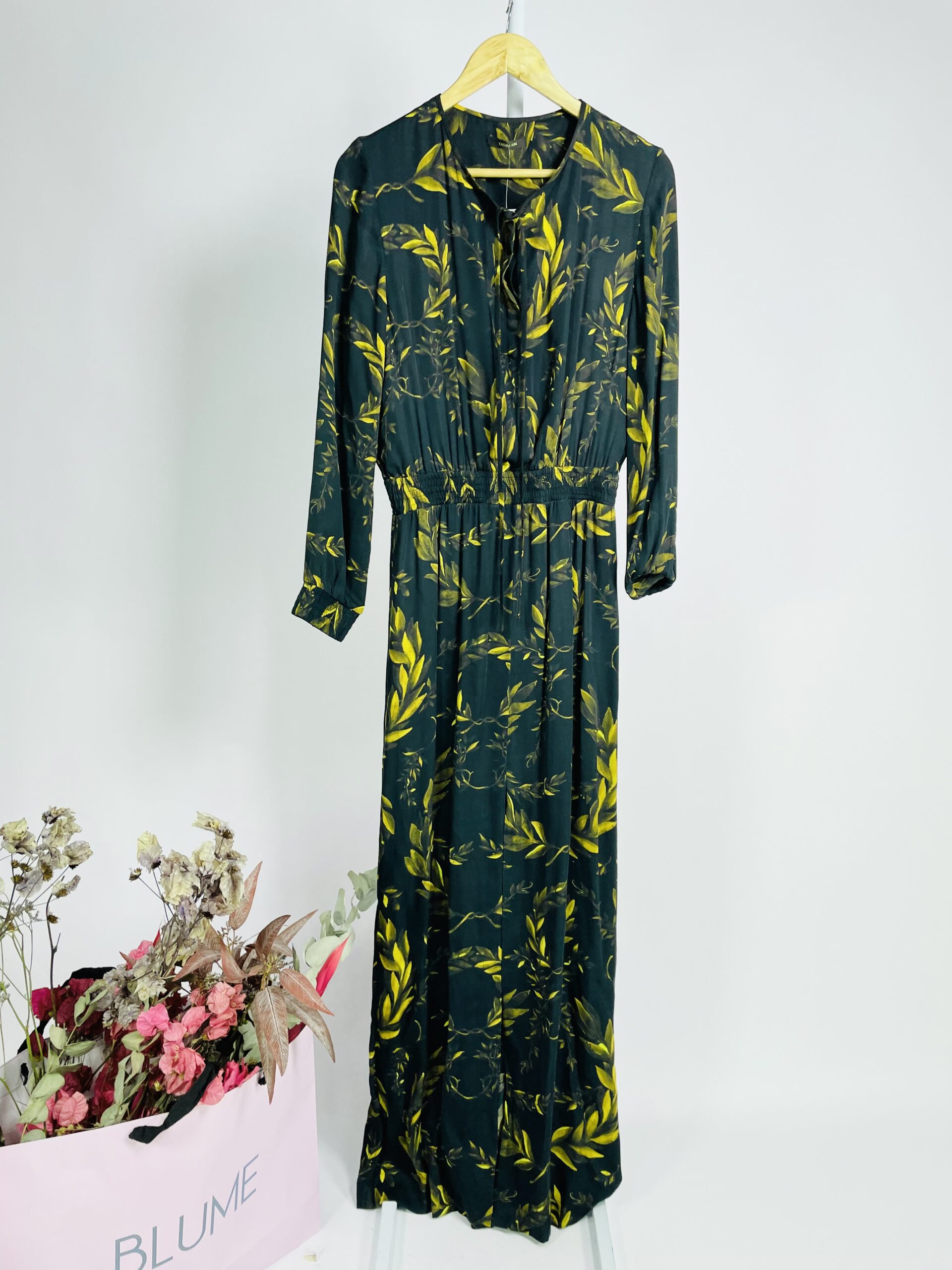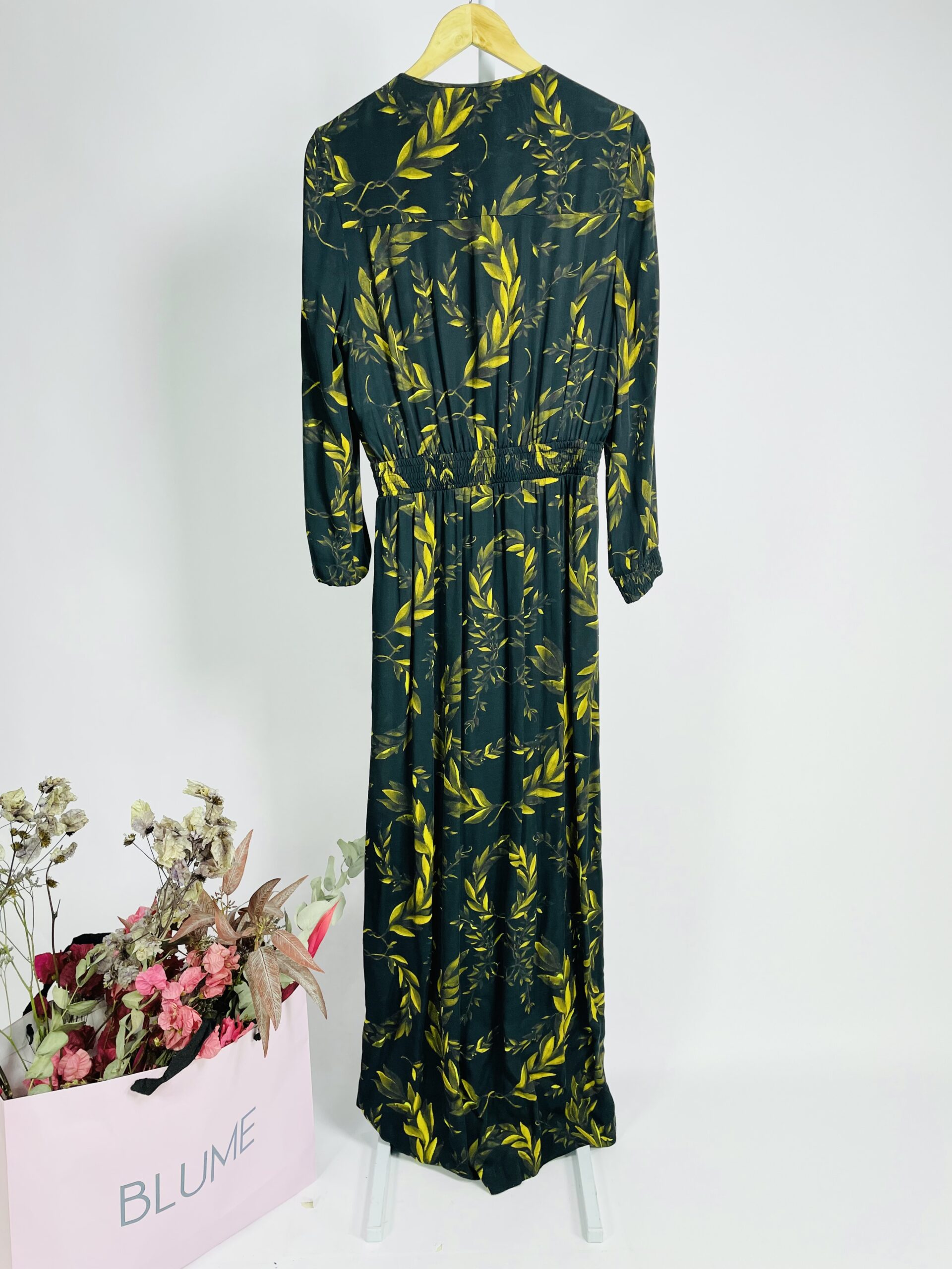 Vestido preto estampa folhagens em tons de marrom e amarelo OSKLEN – P