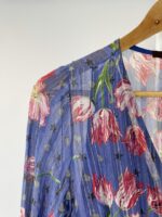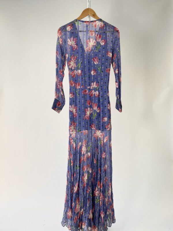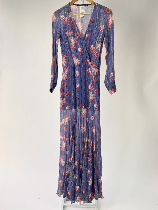 Vestido seda longo azul estampa floral e fios de lurex EVA – 36 – VENDIDO SISTEMA OTO