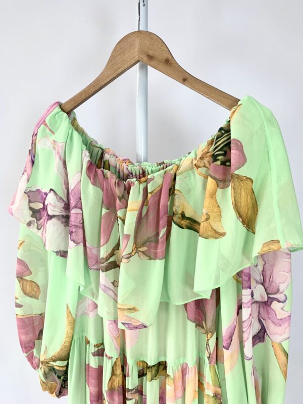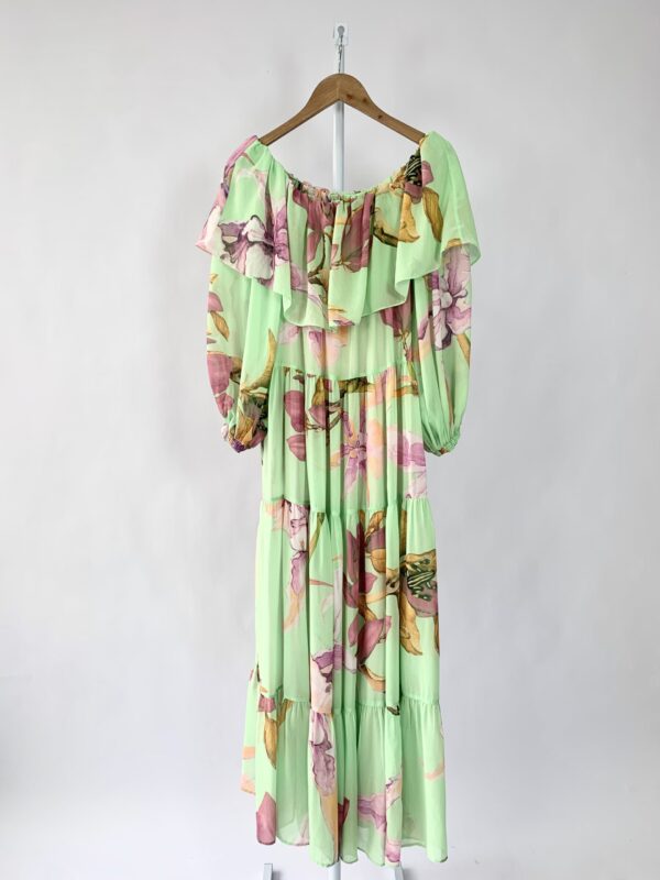 Vestido verde com estampa manga TIG – P – VENDIDO SISTEMA OTO