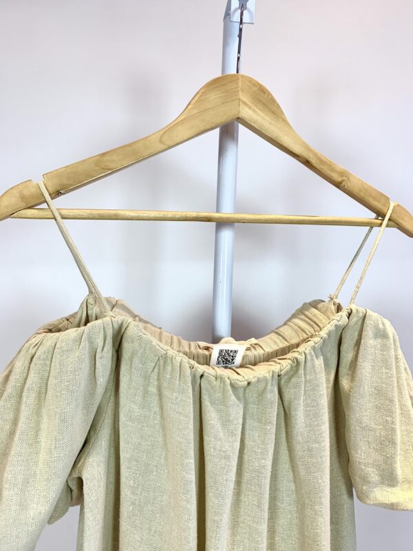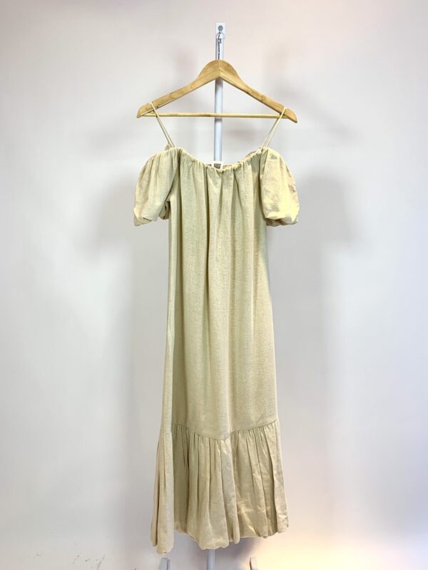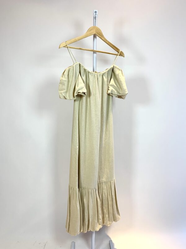 Vestido linho midi ombro a ombro bege CRIS BARROS – 36 – VENDIDO SISTEMA OTTO